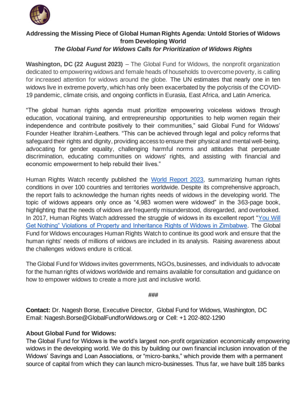 Press Release: Widows Remain Invisible in Human Rights Reports